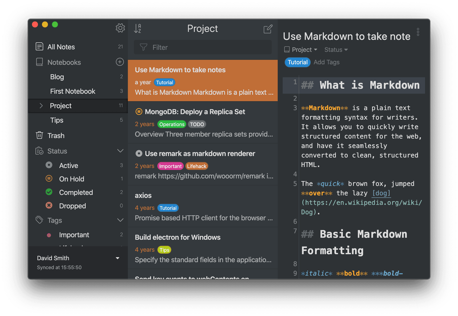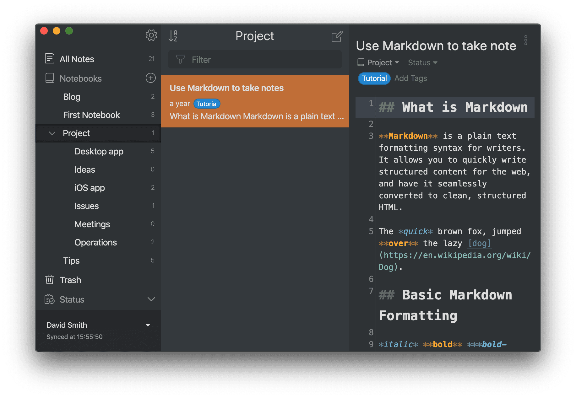 Inkdrop lets you gracefully organize the notebooks, declutter your workspace, and display the information that belongs to a specific notebook.