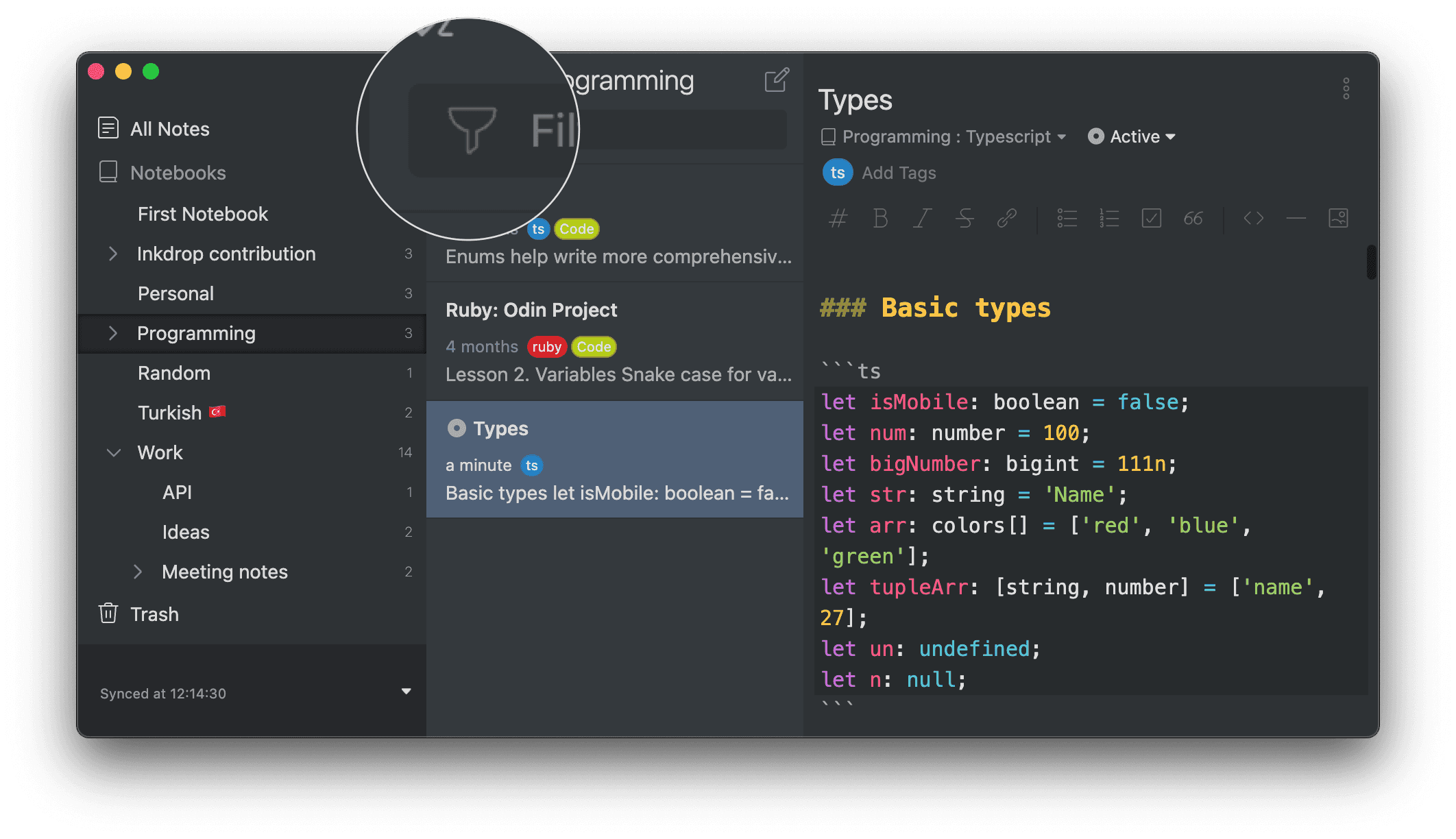 - Filtering: Inkdrop looks for the notes only within a specific notebook. You can think of it as a local search.